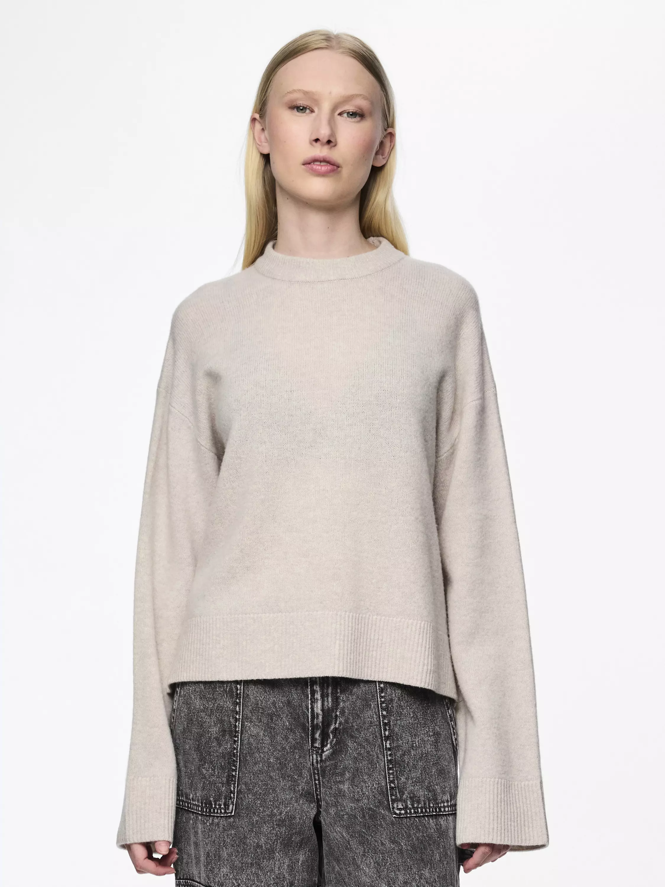 Kaunis Merinovillainen neule, jossa on helmassa halkiot. Malli on lyhyehkö ja hieman leveä. Neuleessa on kauniit leveät hihat.