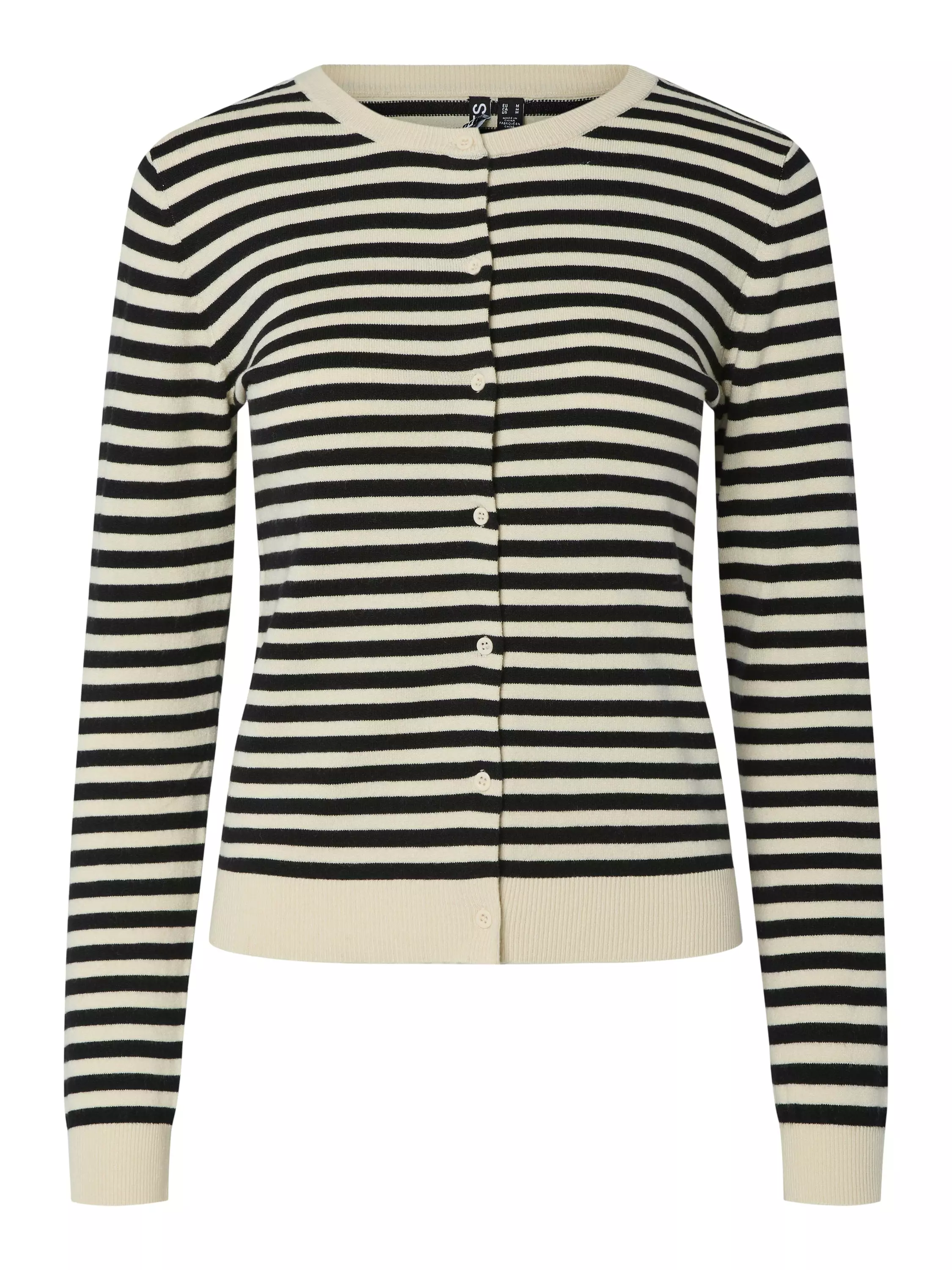 Neuletakki, jossa on nappikiinnitys.