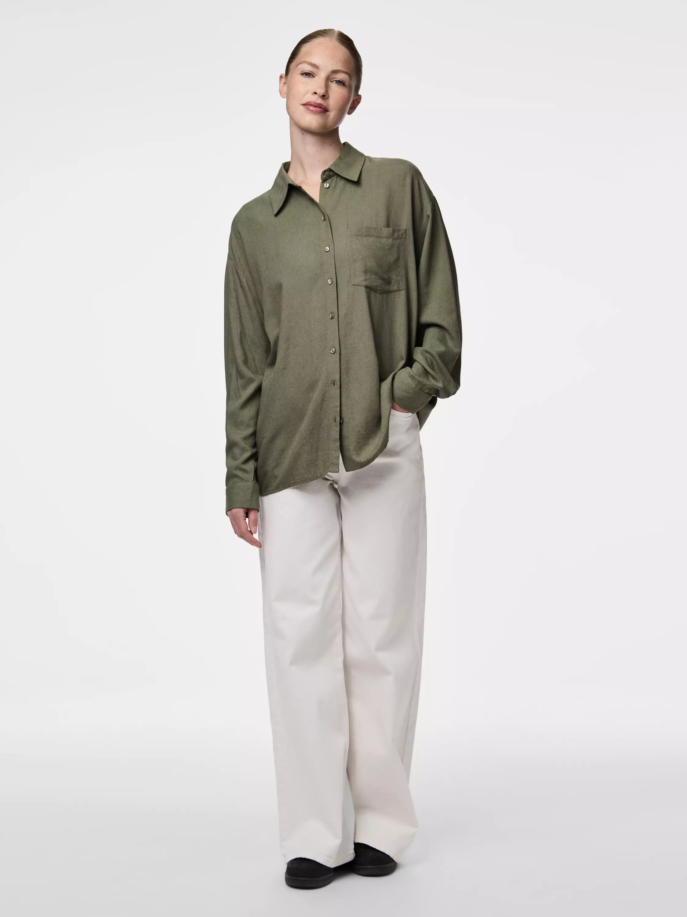 Pitkähihainen pellavapaita, jossa on edessä nappikiinnitys.