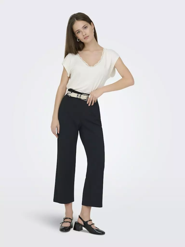 Culotte-mittaiset housut, jotka ovat erittäin joustavaa materiaalia. Housuissa on kuminauhavyötärö ja sivutaskut.