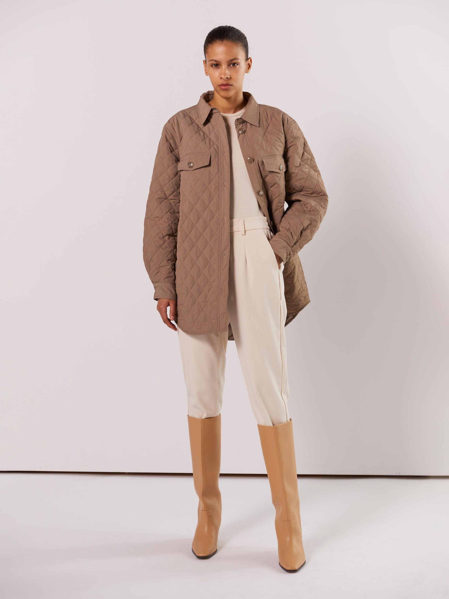 Puolipitkä tikkitakki, jossa on nappikiinnitys.