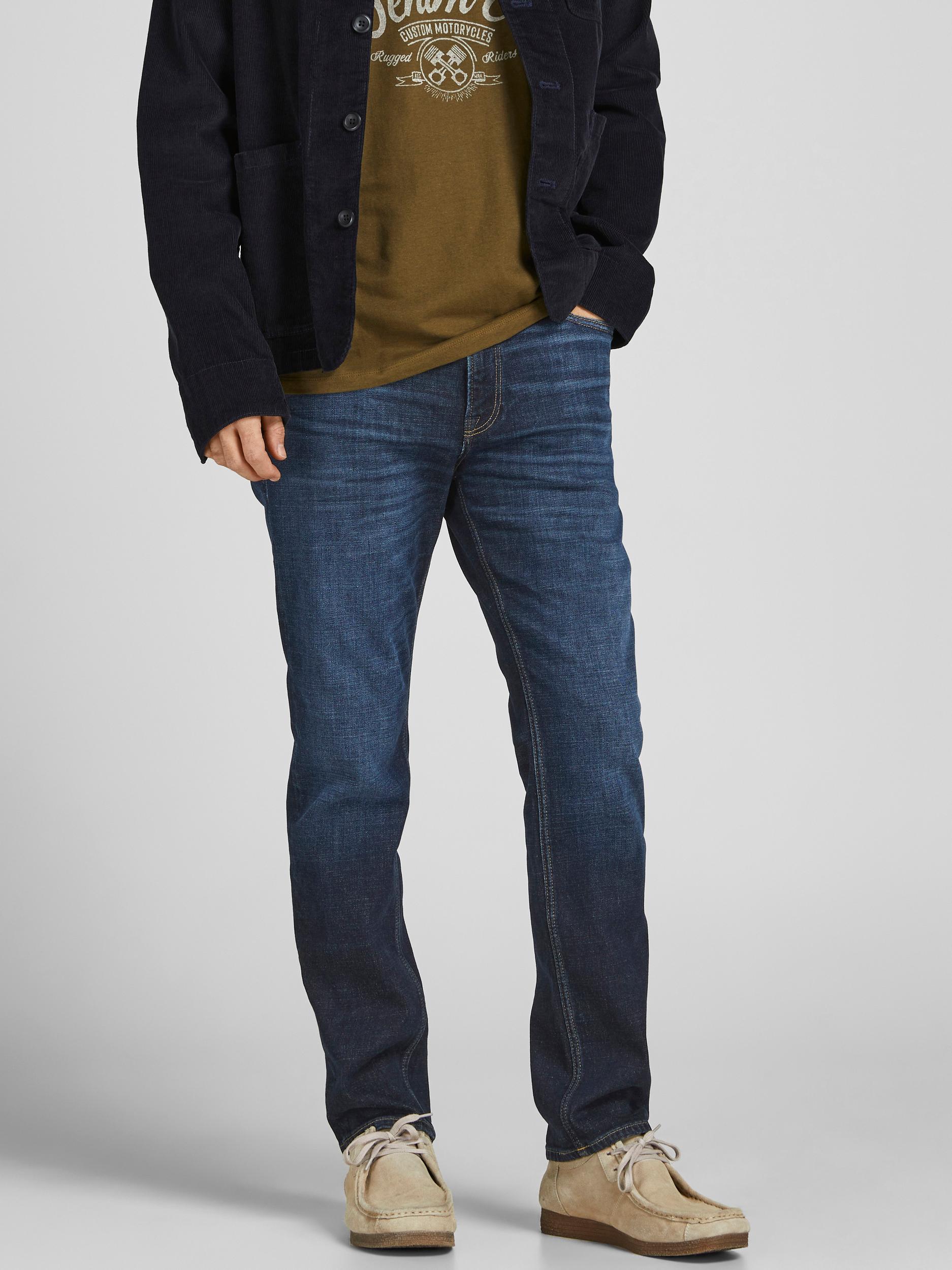 Tummansiniset regular farkut, joissa normaali vyötärö ja suorat lahkeet.
