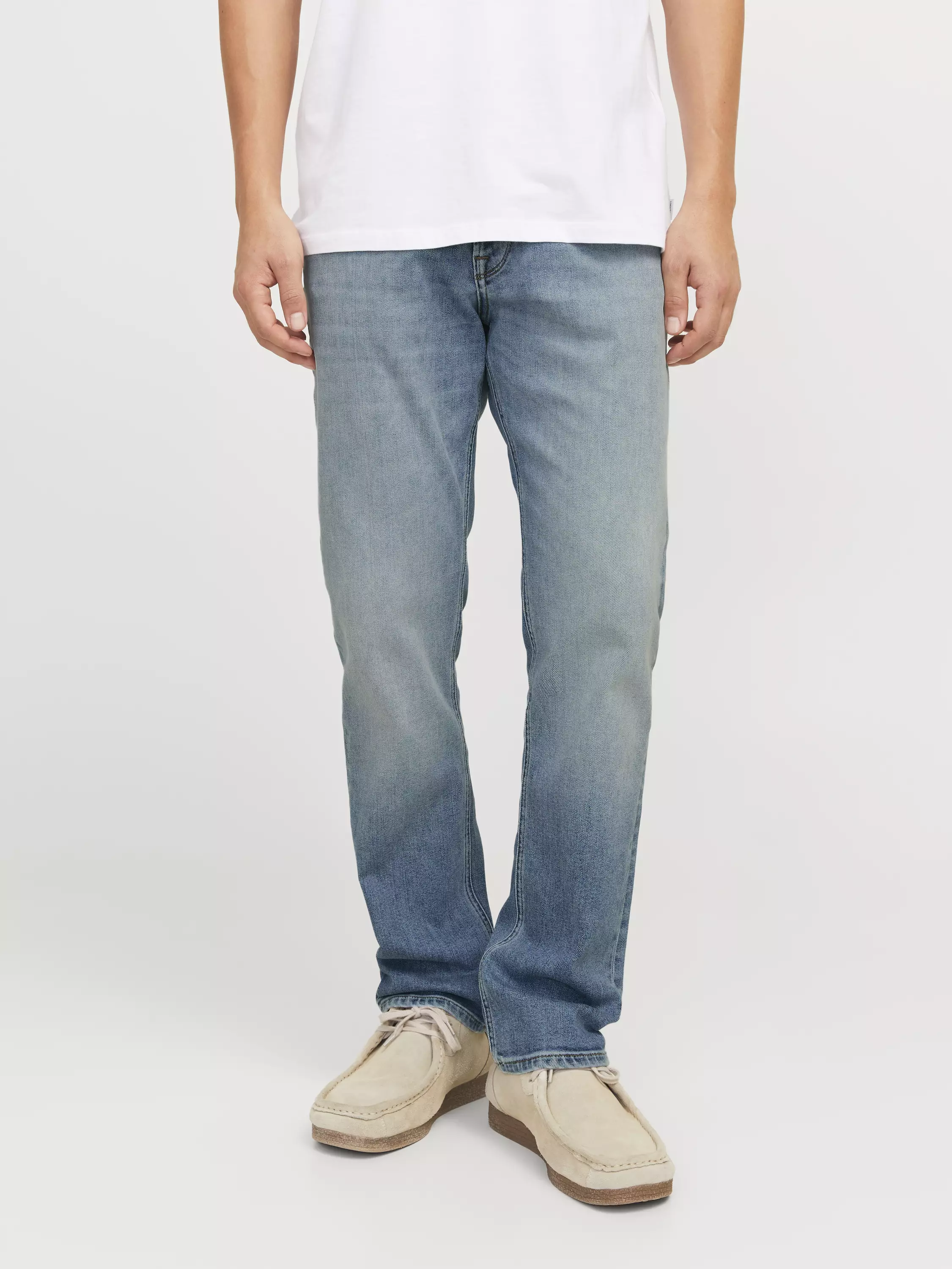 Vaaleansiniset regular-malliset farkut, joissa on normaali vyötärö ja suorat lahkeet. Farkut joustavat mukavasti!
