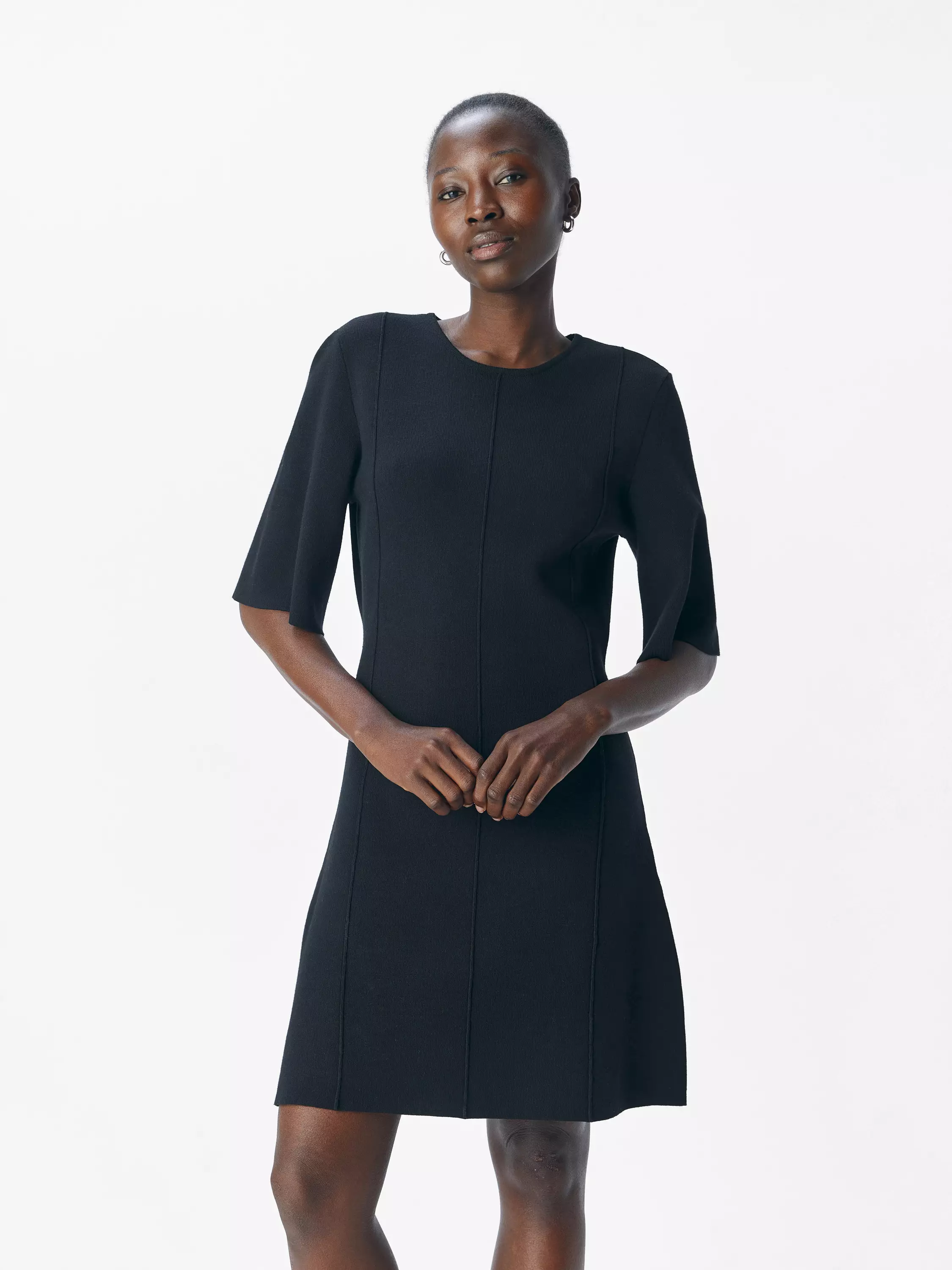 Joustava neulemekko, jossa on 1/2-hihat. Mekossa on levenevä helma sekä kapea vyötärö.
