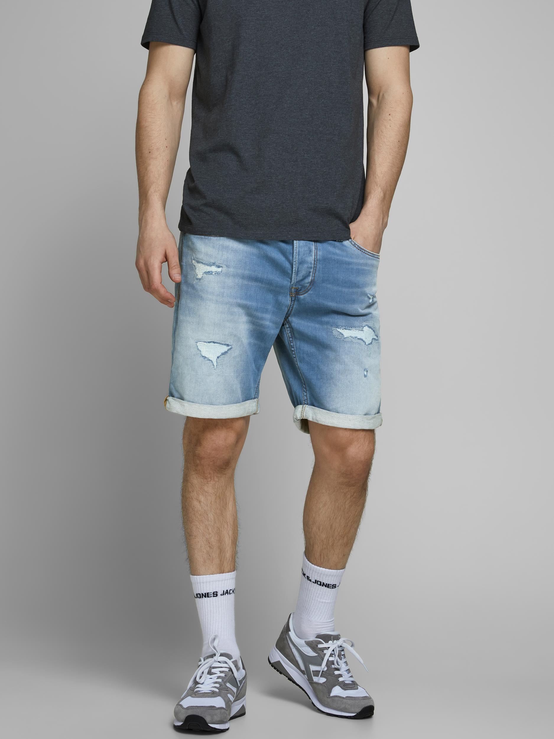 Regular -malliset farkkushortsit, pehmeä ja joustava kangas. Edessä kulutuksia.