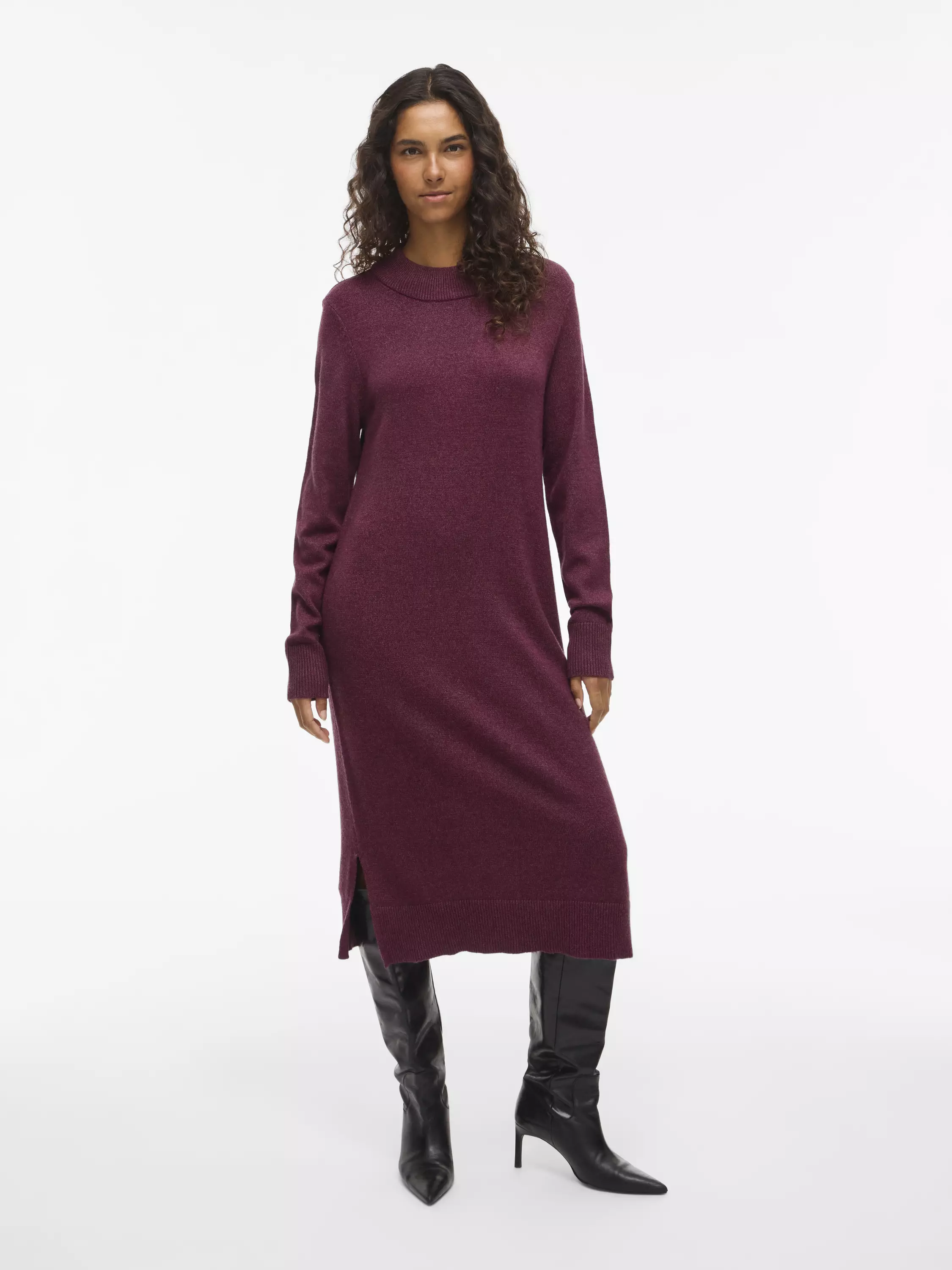 Midi -mittainen neulemekko, jossa on pyöreä pääntie.