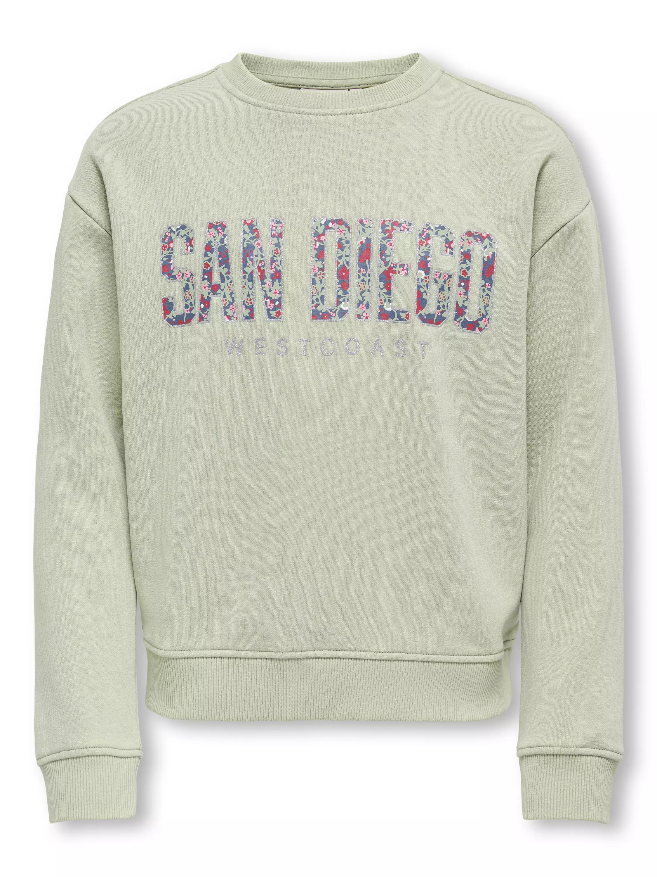 Regular-mallinen collegepaita, jossa on tekstipainatus edessä. Kangas on melko ohutta.