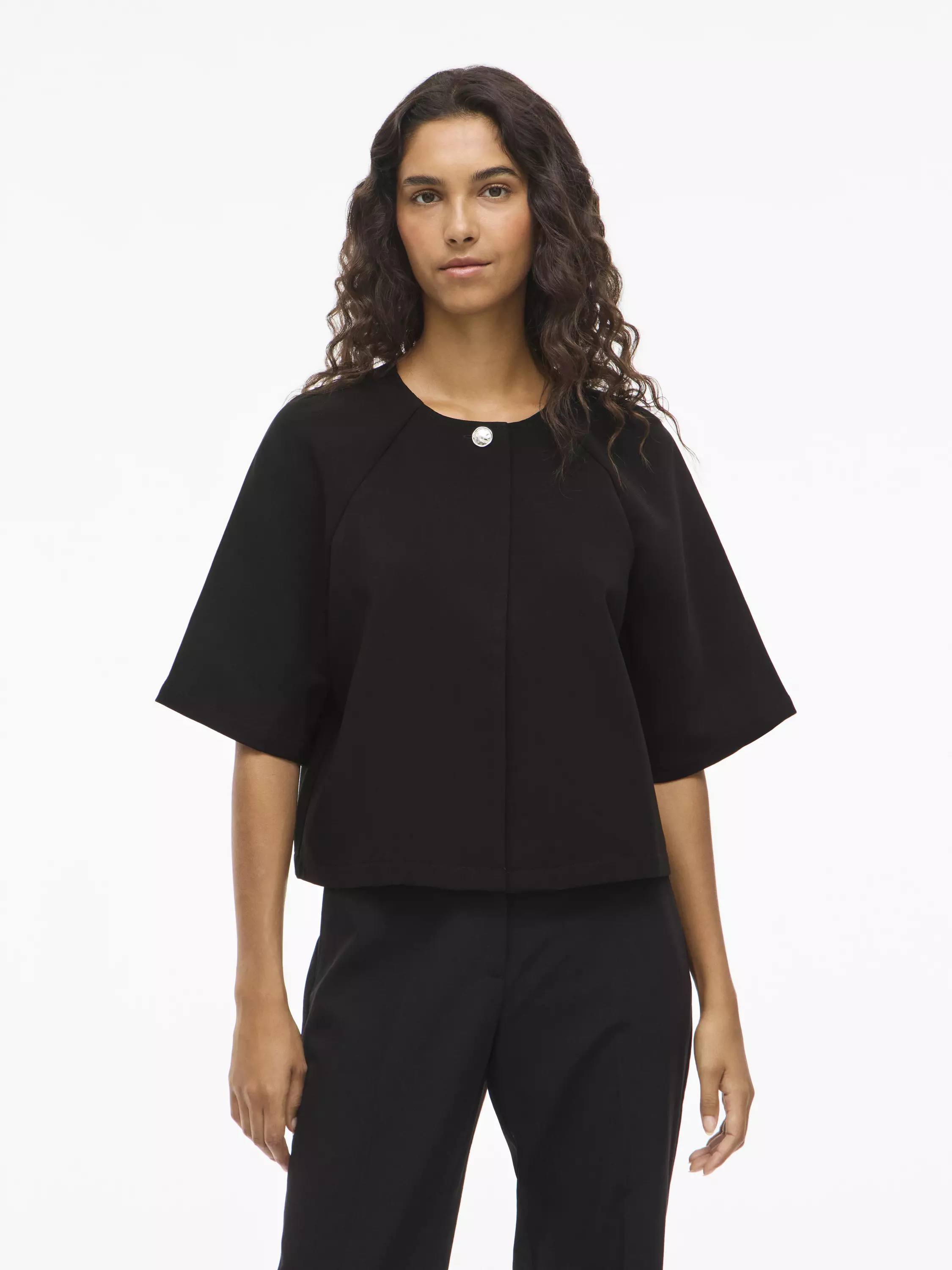 Lyhyt jakku, jossa on 2/4-mittaiset hihat. Kauluksettoman jakun pystyy kiinnittämään yhdellä kauniilla ylänapilla. Jakussa on leveät raglan-hihat ja hieaman leveä malli.