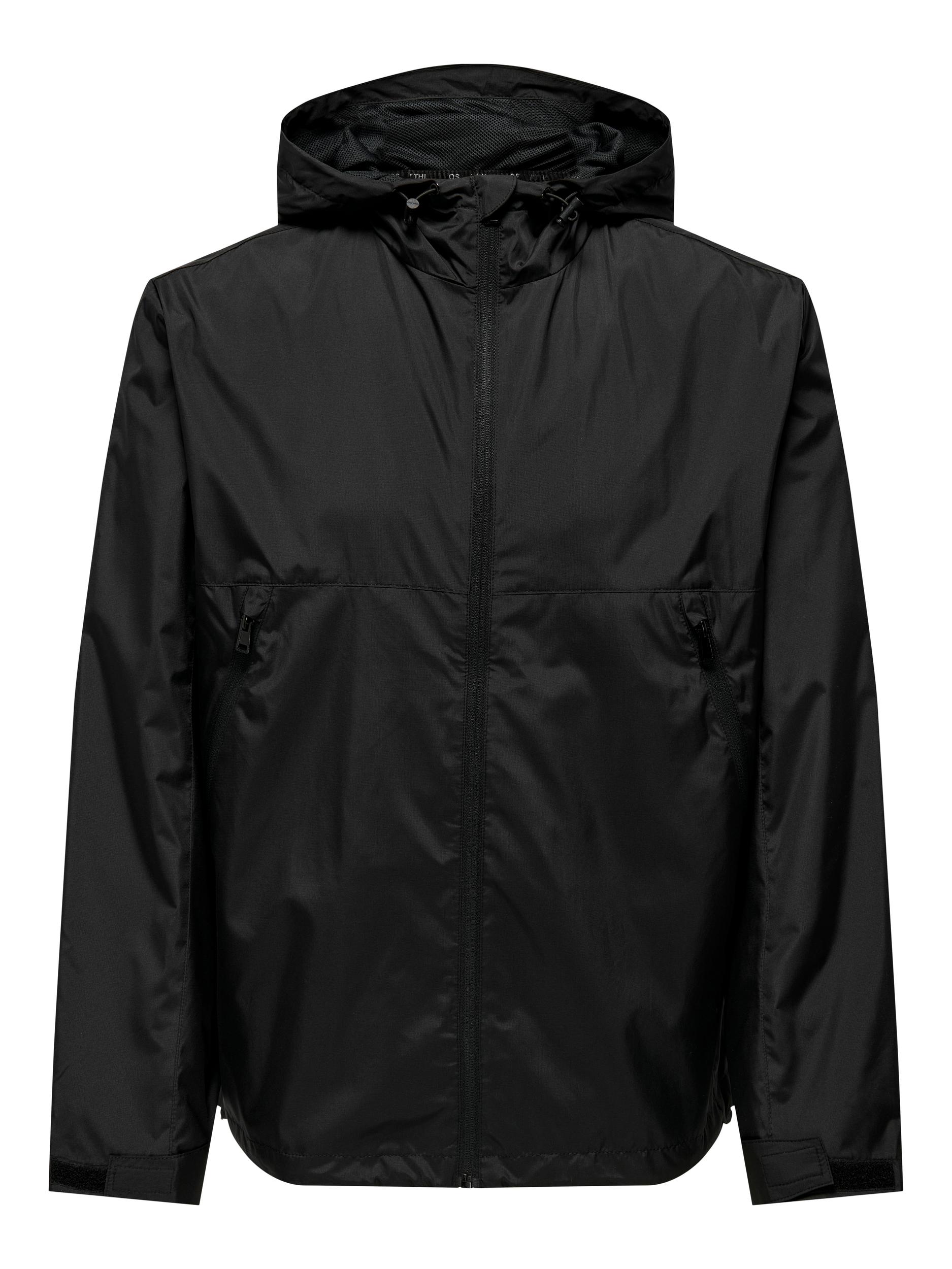 Kevyt tuulitakki, jossa on huppu ja verkkovuori. Takissa on taskut ja kiristysmahdollisuus helmassa.