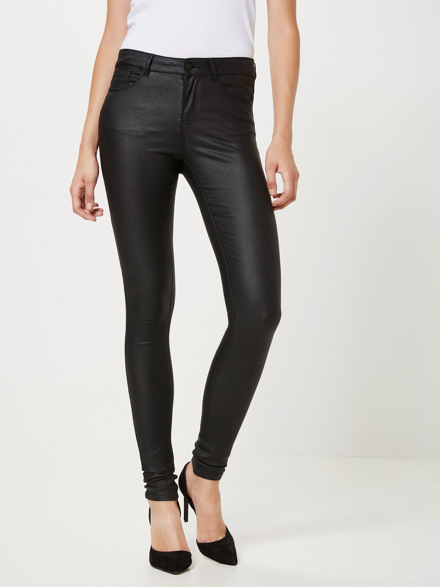 Pu-pinnoitettu normaalivyötäröinen kapea housu