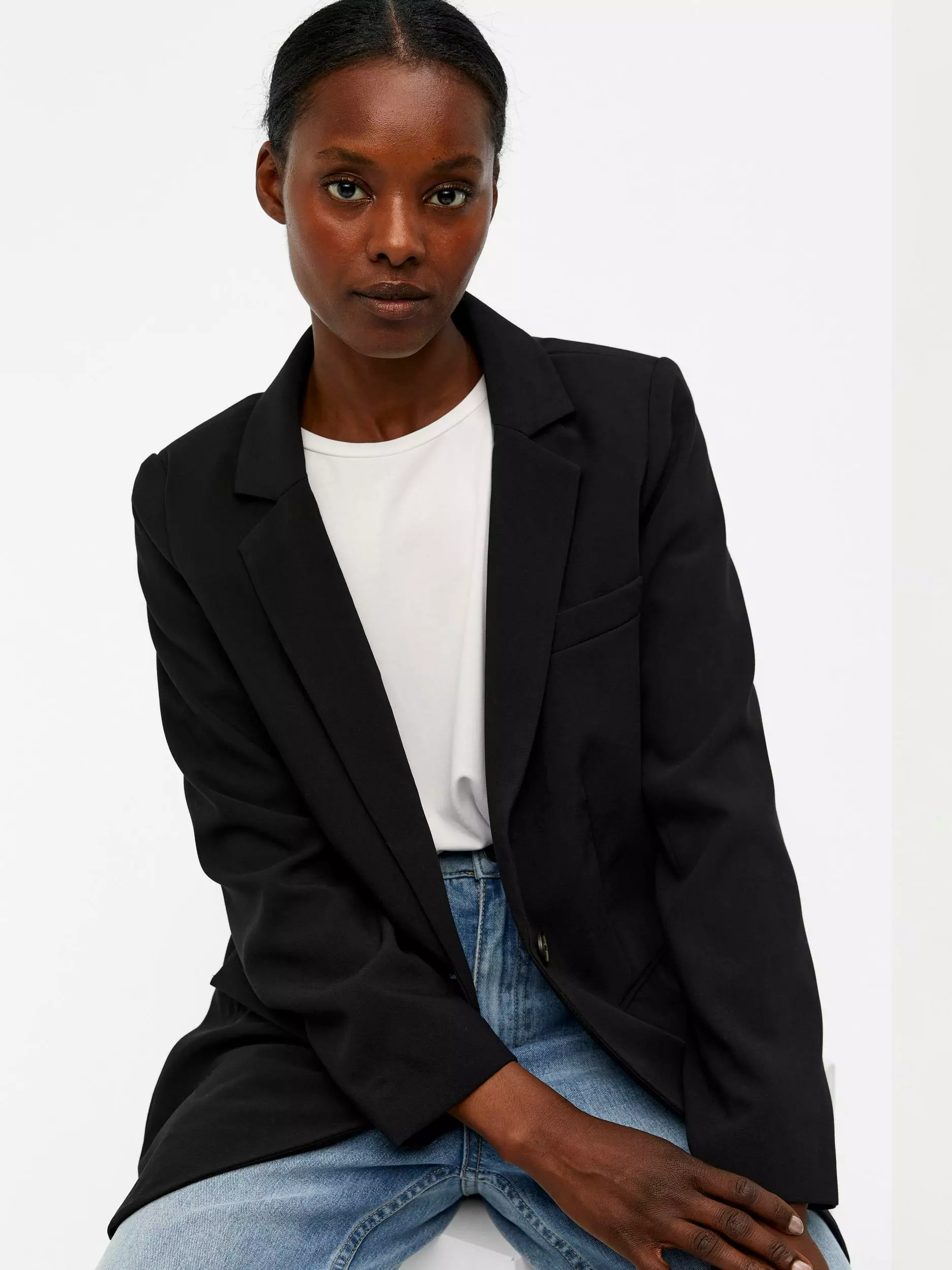 Oversize- mallinen bleiseri, jossa on edessä nappikiinnitys ja taskut. Takissa on vuori ja kevyet olkatoppaukset.