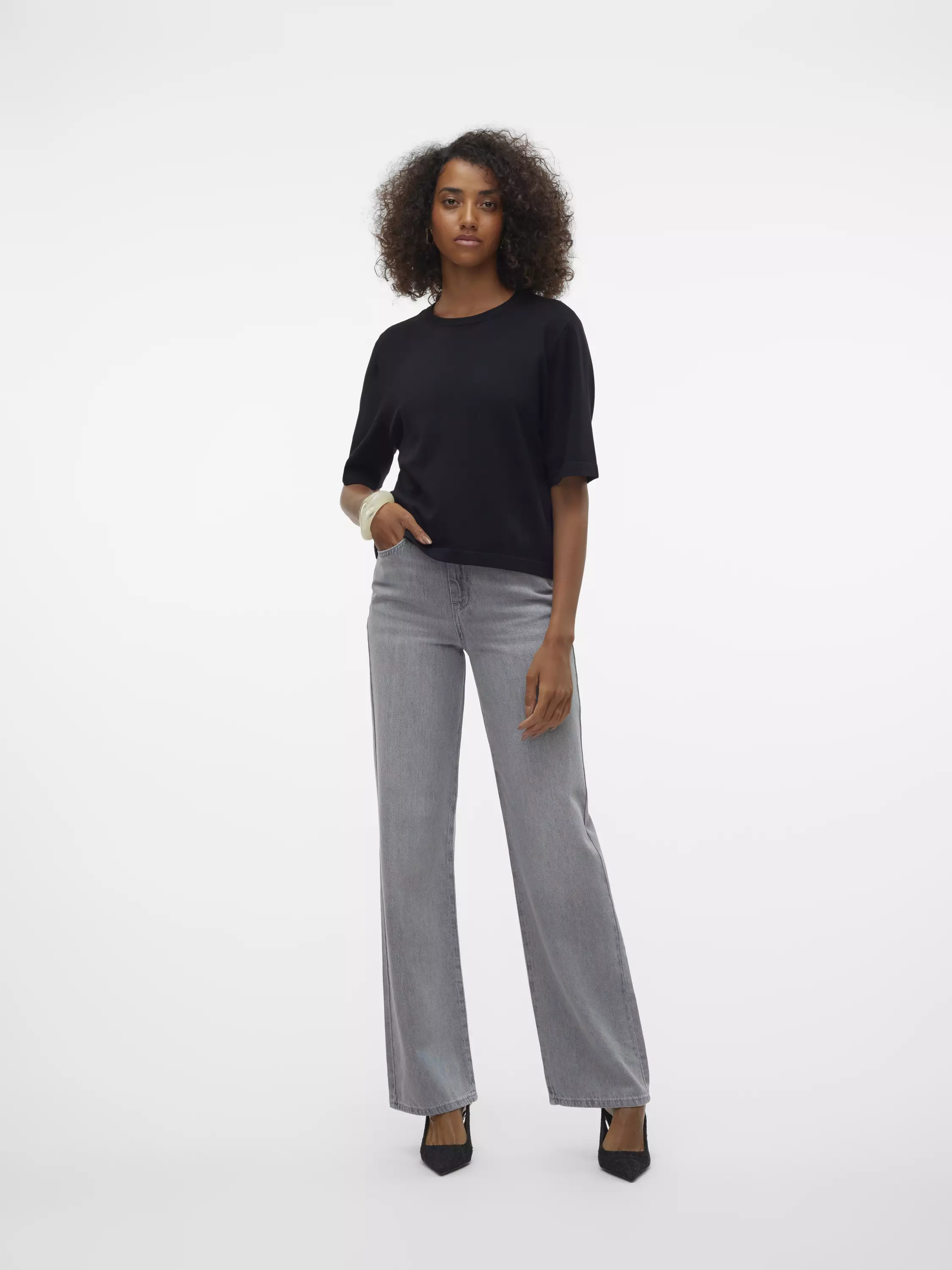 Kiva ohut neule, jossa on 2/4 -mittaiset hihat. Neule on oversized-mallinen.