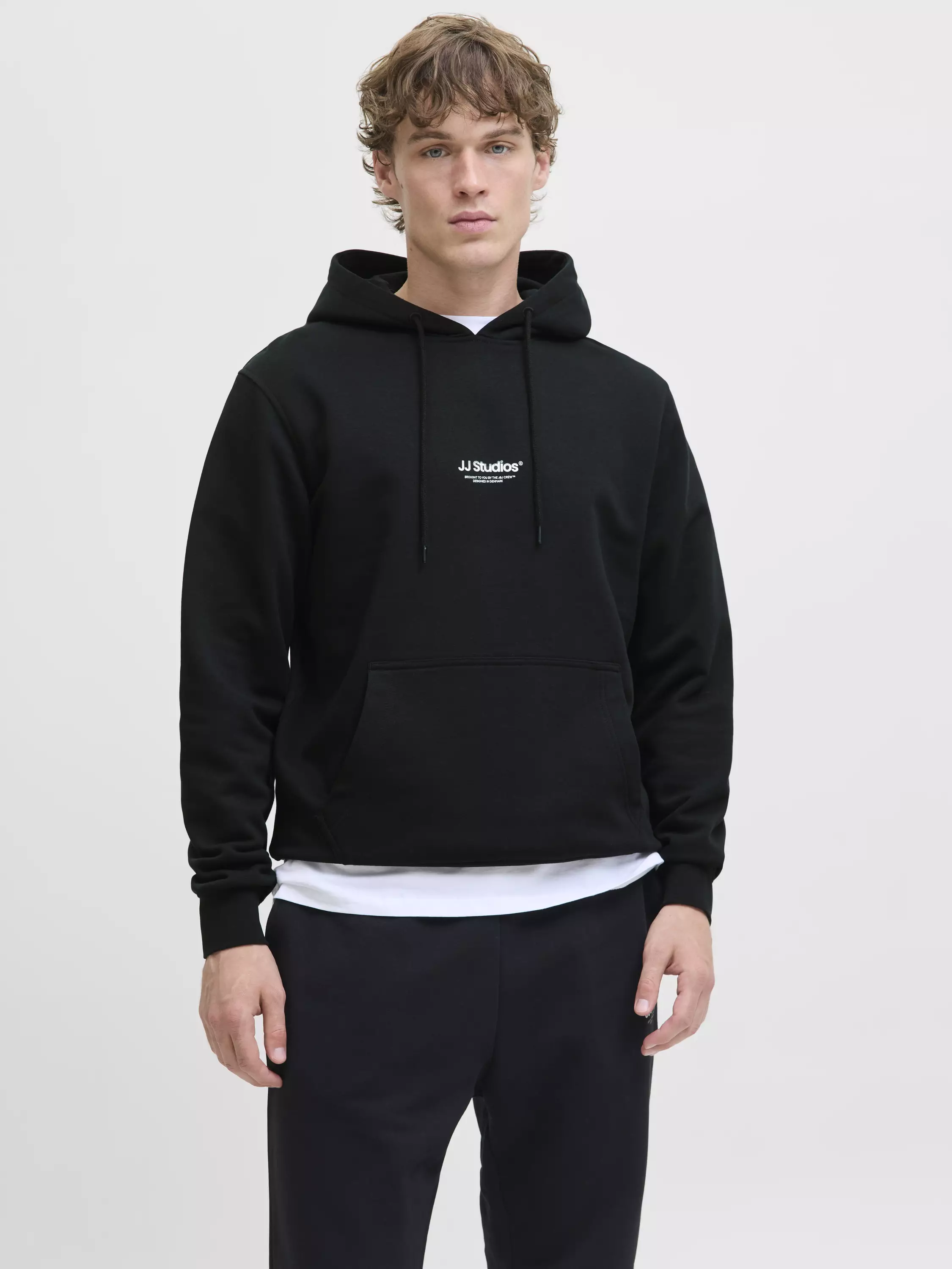 Huppari, jossa on edessä kengurutasku ja hupussa kiristysnarut.