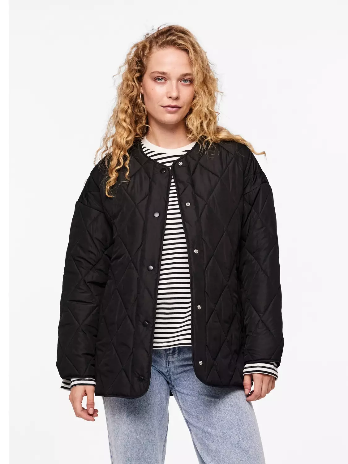 Lyhyehkö ohut tikkitakki, jossa on nepparikiinnitys. Takki on jakkumainen, jossa ei ole kauluksia. Takissa on taskut ja pyöristetty helma.