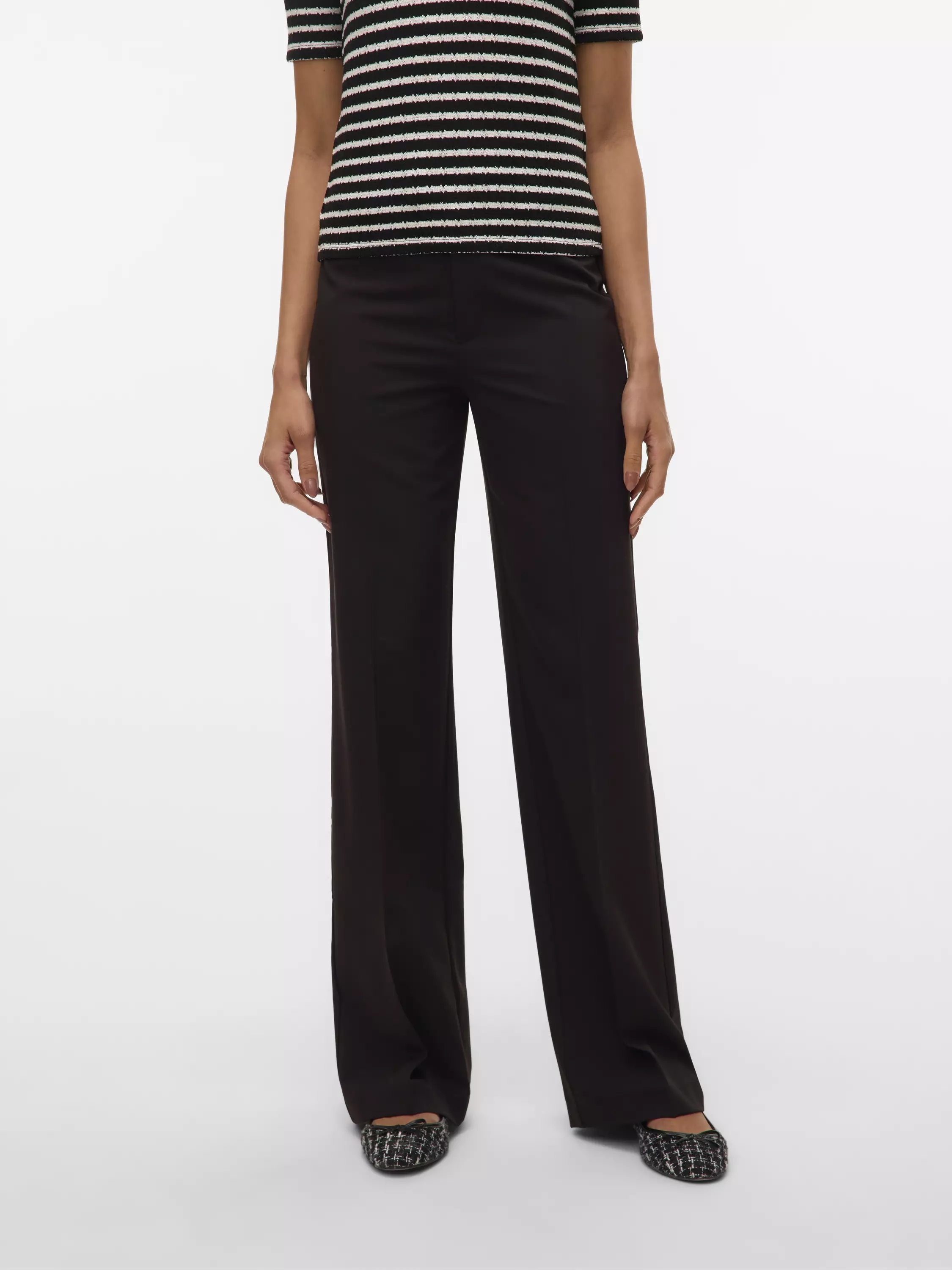 Normaalivyötäröiset suorat housut, jossa mukavan joustava materiaali.
