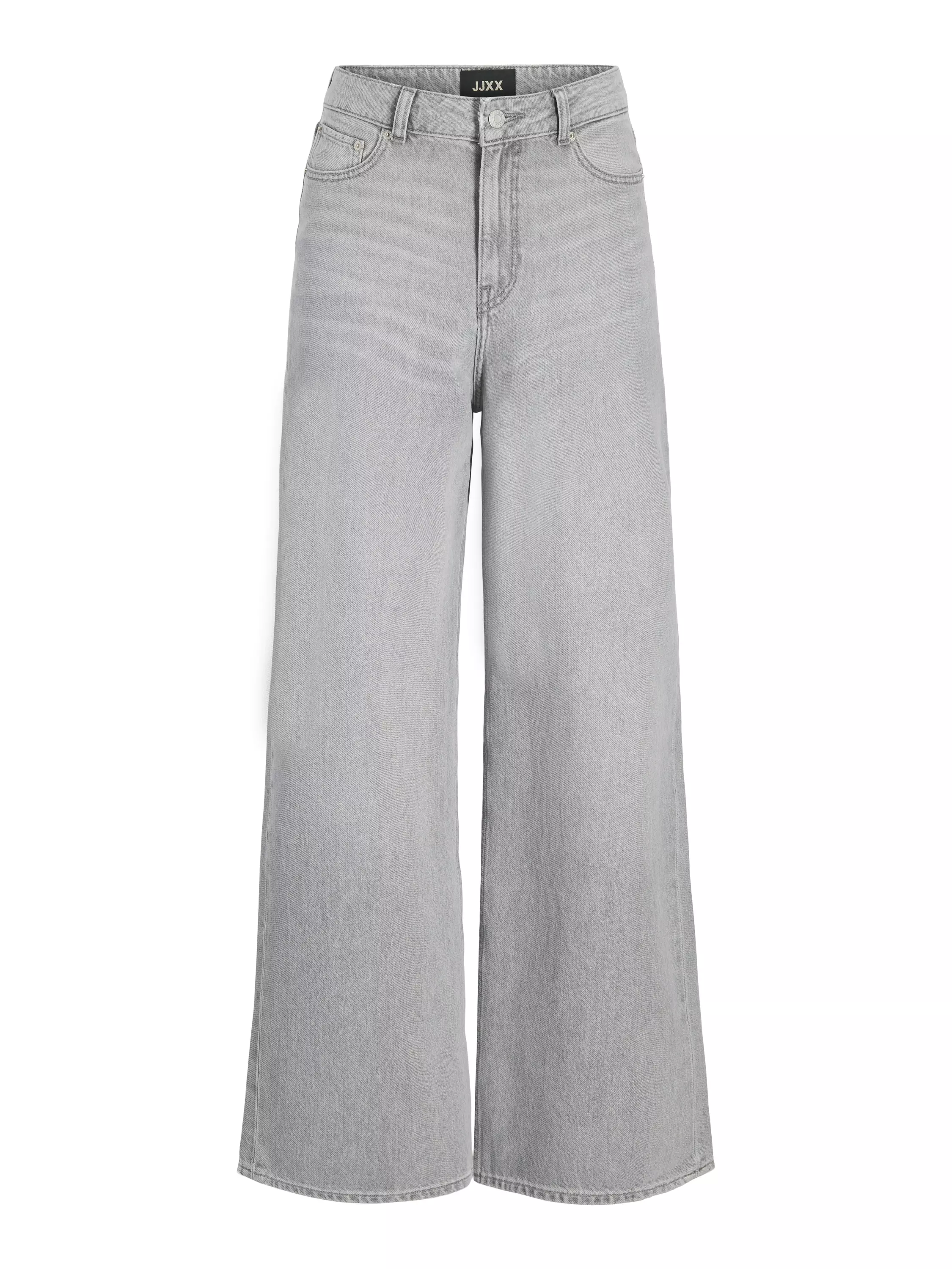 Korkeavyötäröiset ja leveät farkut. Farkuissa on kaunis vaaleanharmaa väri.
