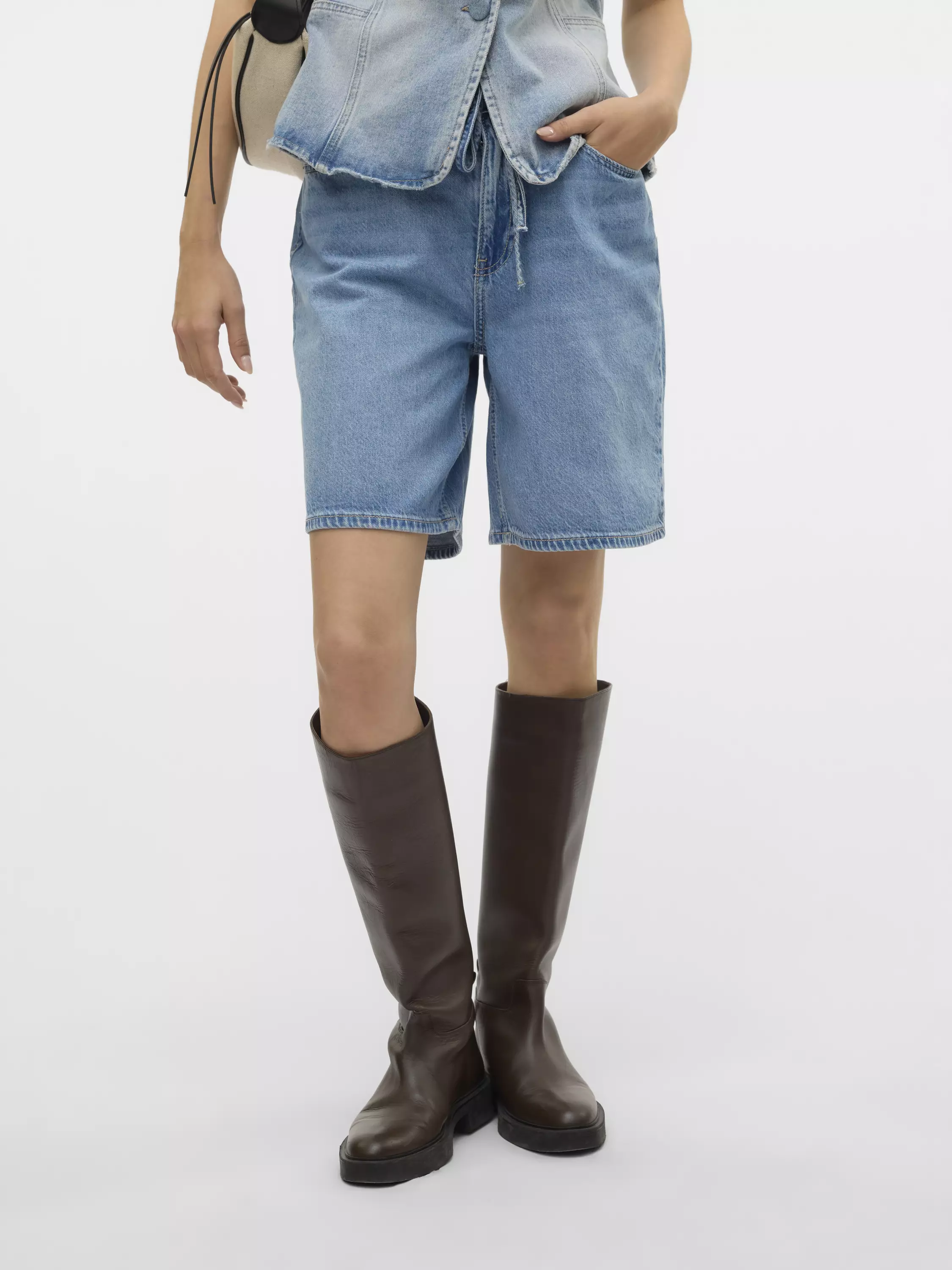 Reisimittaiset shortsit, joissa on vyötäröllä kiristettävä vyö. Shortseissa on keskikorkea vyötärö.