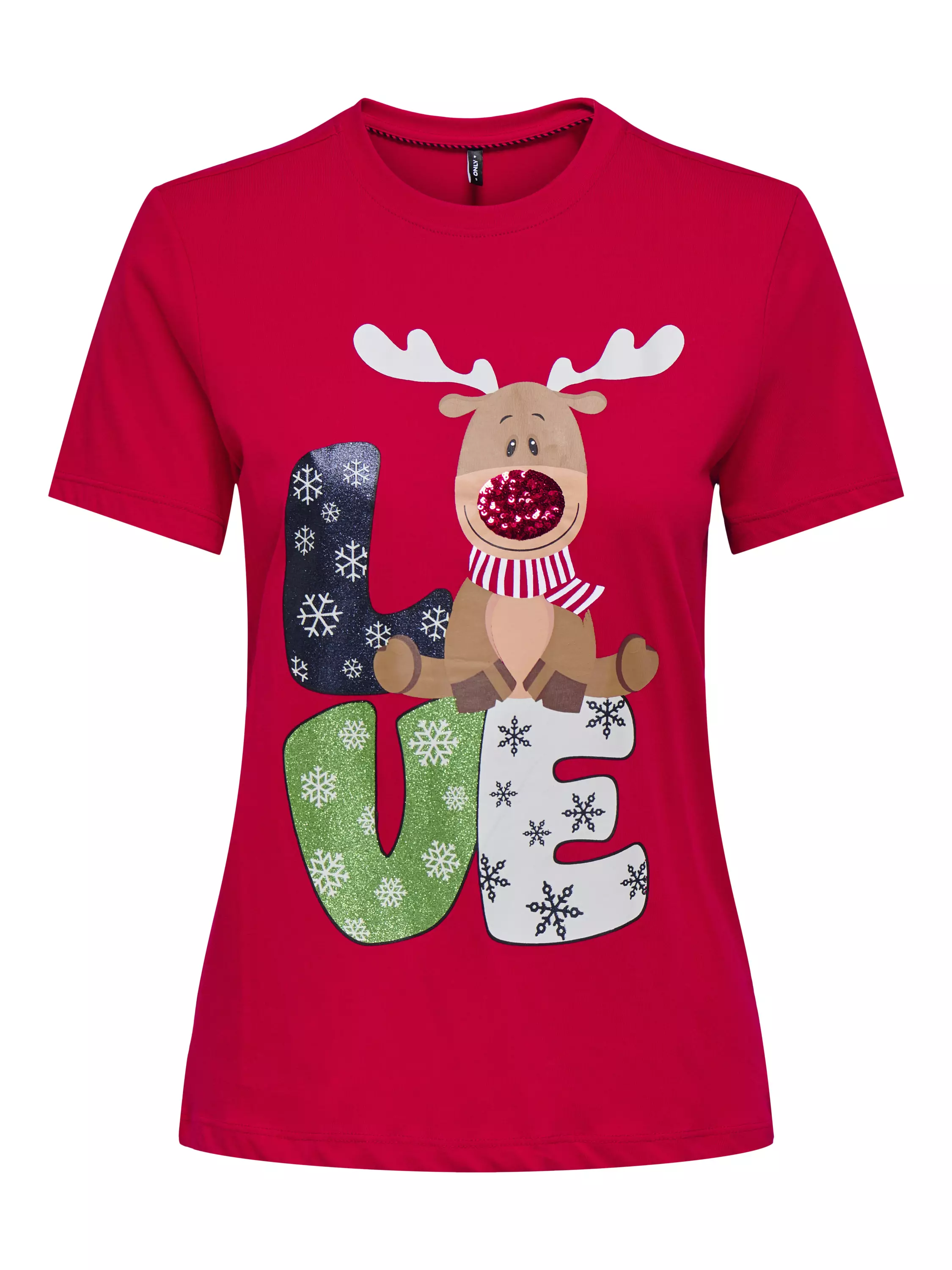 Hauska jouluaiheinen t-paita. Paidoissa erilaiset tekstit ja kuvat.