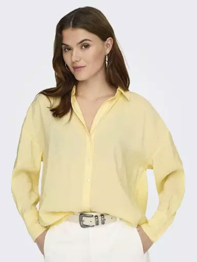 Loose-mallinen kauluspaita, jossa on edessä nappikiinnitys.