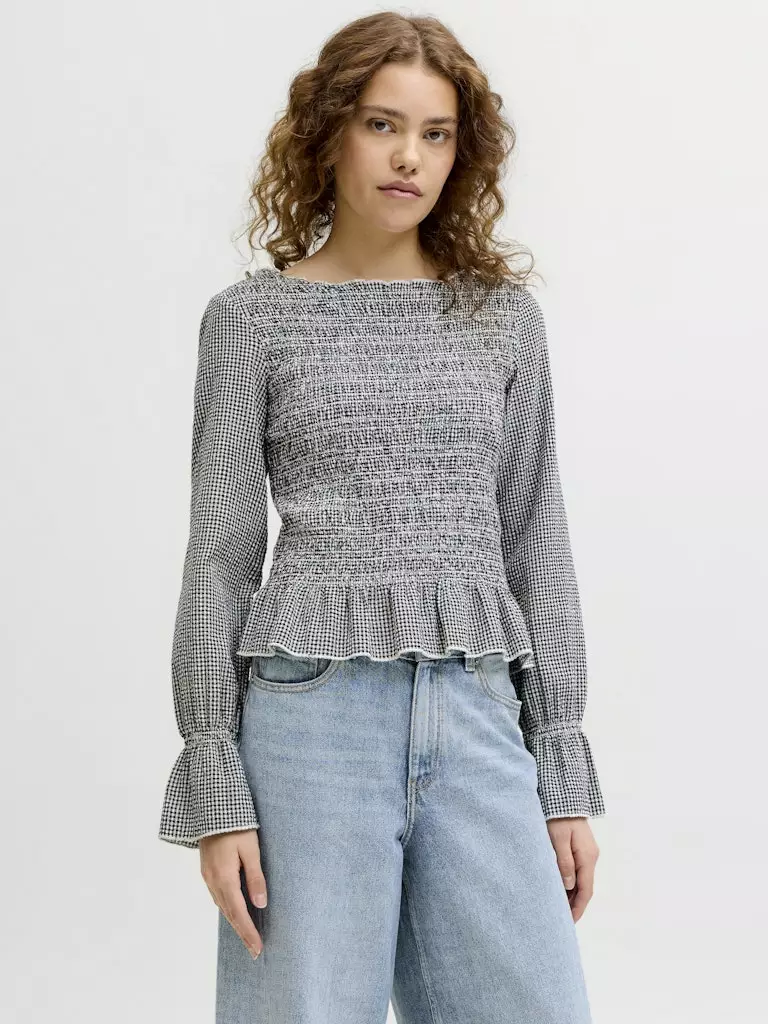 Kaunis pitkähihainen paita, jossa on joustava smokkiyläosa. Hihansuissa ja helmassa on kauniit kuminauha kiristykset. Paita on samaa sarjaa Zoe hameen kanssa.
